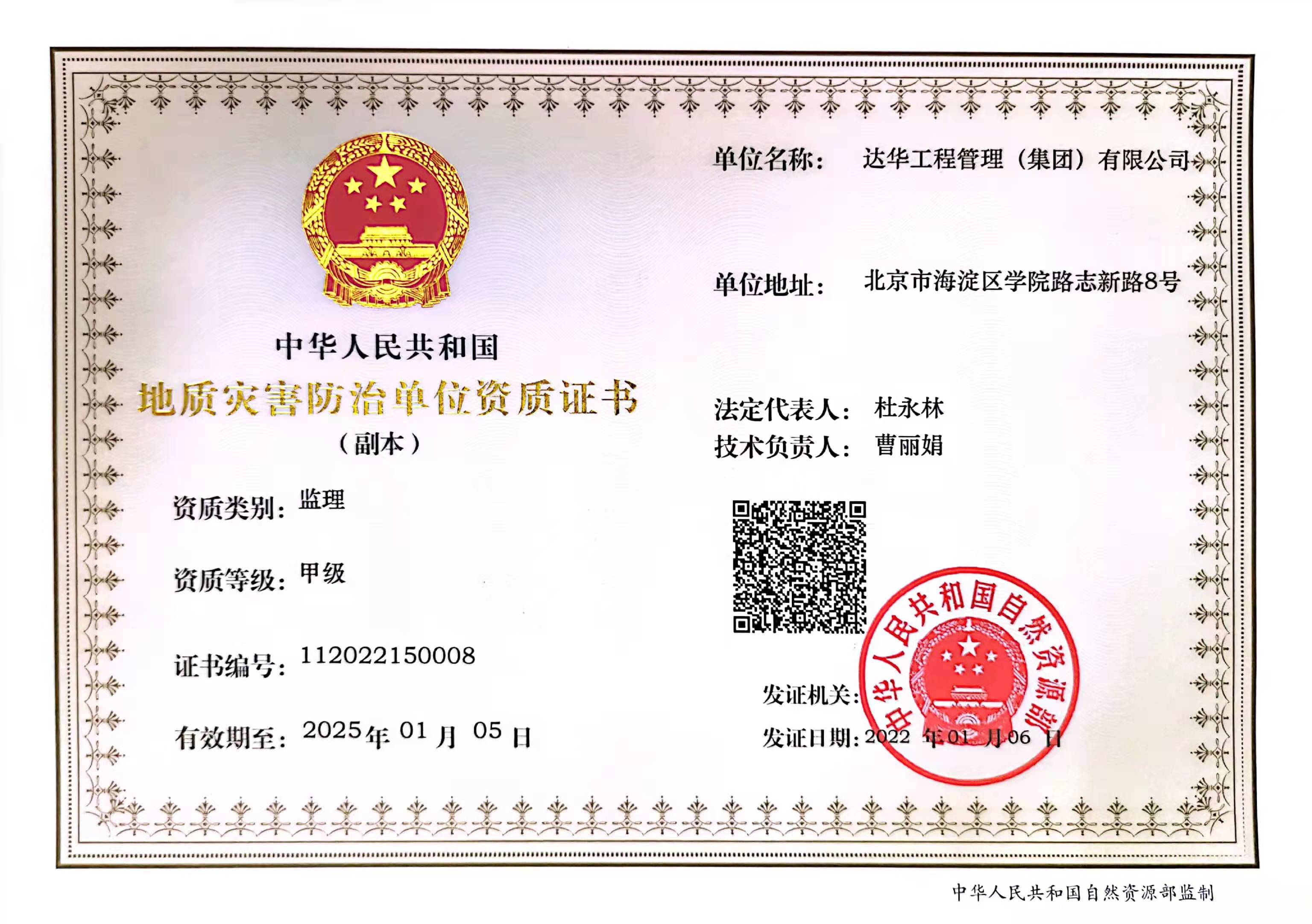 - 達(dá)華集團(tuán)榮獲中國(guó)自然資源部頒發(fā)的地質(zhì)災(zāi)害… 2022/01/21